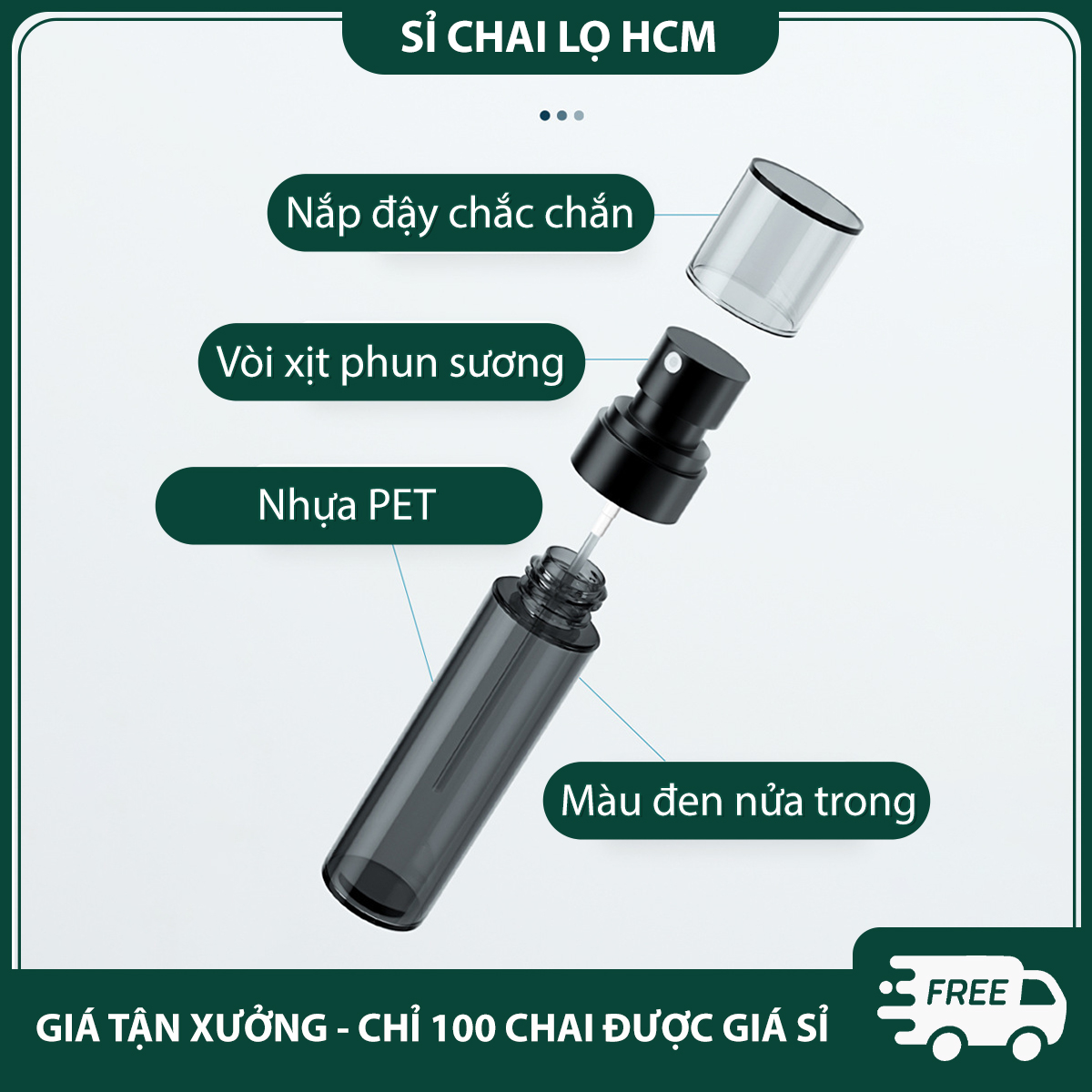 • Dung tích: 30ml, 60ml, 100ml